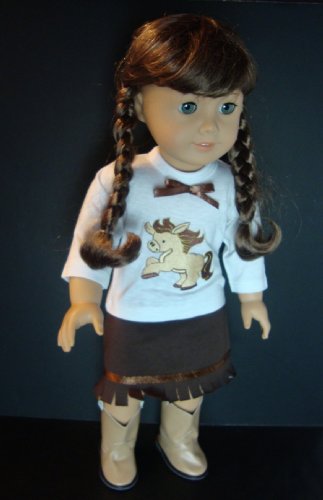 Review 3 Pc Cowgirl Set with Brown Fringed Skirt White T-shirt with Pony on It and a Pair of Cowboy Boots Made to Fit the 18 Inch Doll Like American Girl and Madame Alexander Series Shoes Included by webmaster.